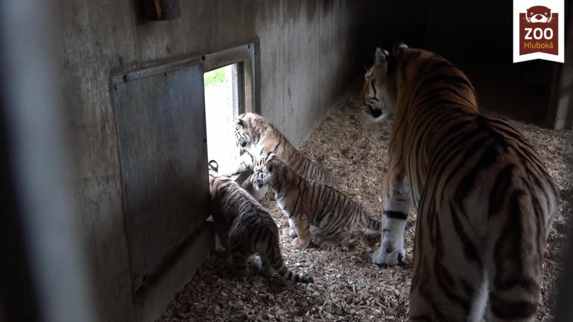 Od čtvrtka 23. 10. mohou tygřata do venkovního výběhu. Z počátku nechtěla opustit bezpečí zázemí a vstoupit na plochu pro ně neznámou, ale nakonec zvědavost a odvaha zvítězila. Také tygřice si výběh po intenzivní mateřské přestávce velmi užívá.
